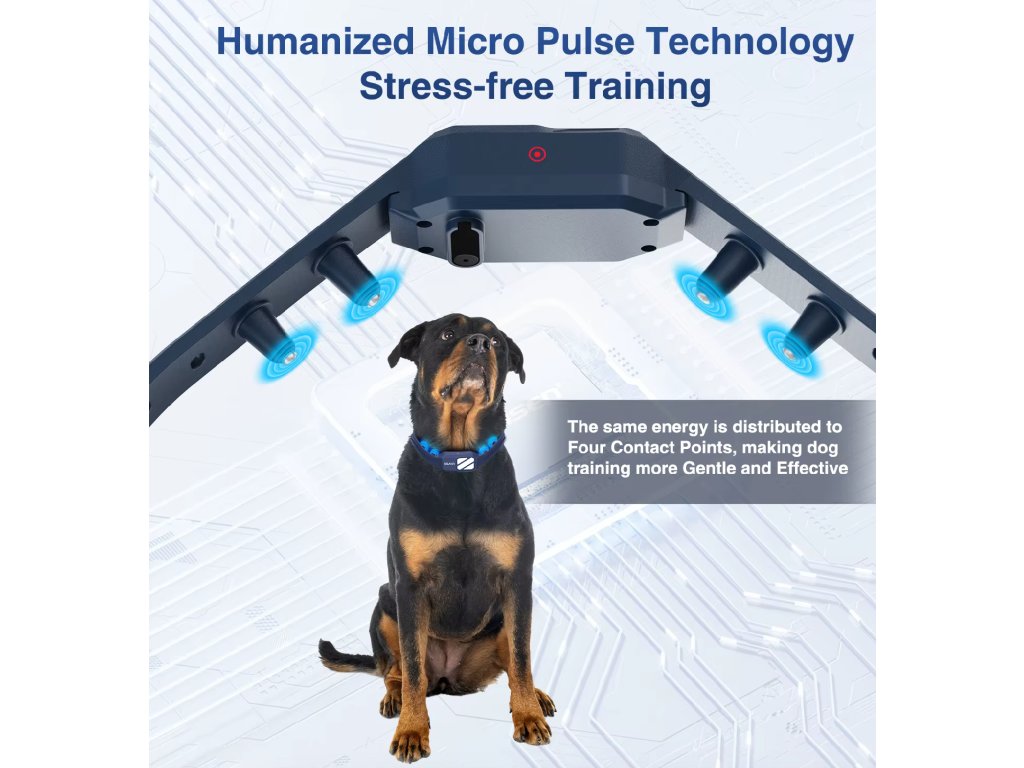Technológia Micro‑Pulse: nízkofrekvenčné impulzy sú jemné a krátkodobé, zaručujú bezpečnosť a pohodlie pre psa.